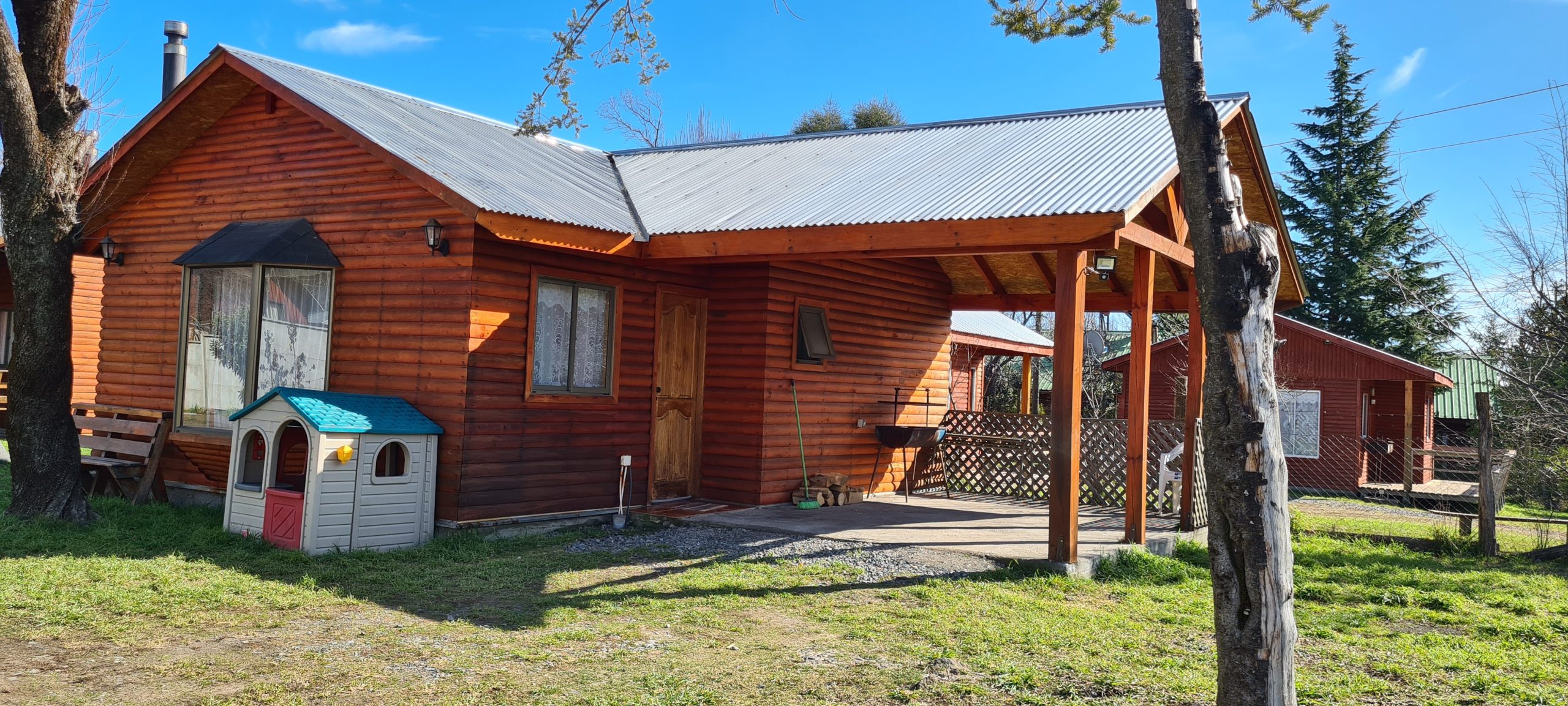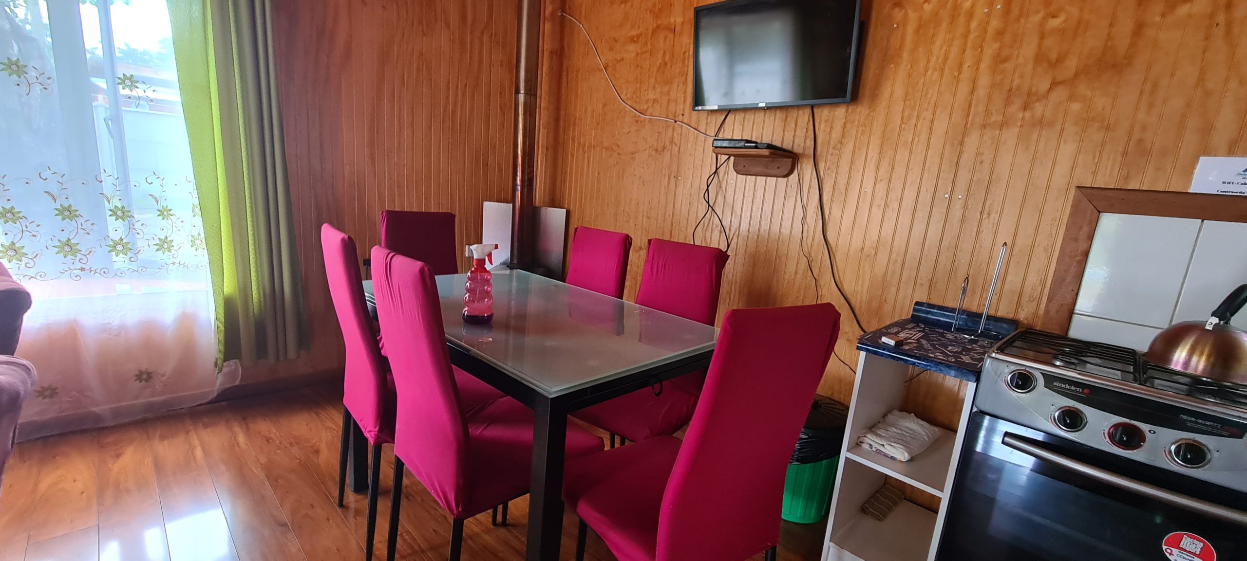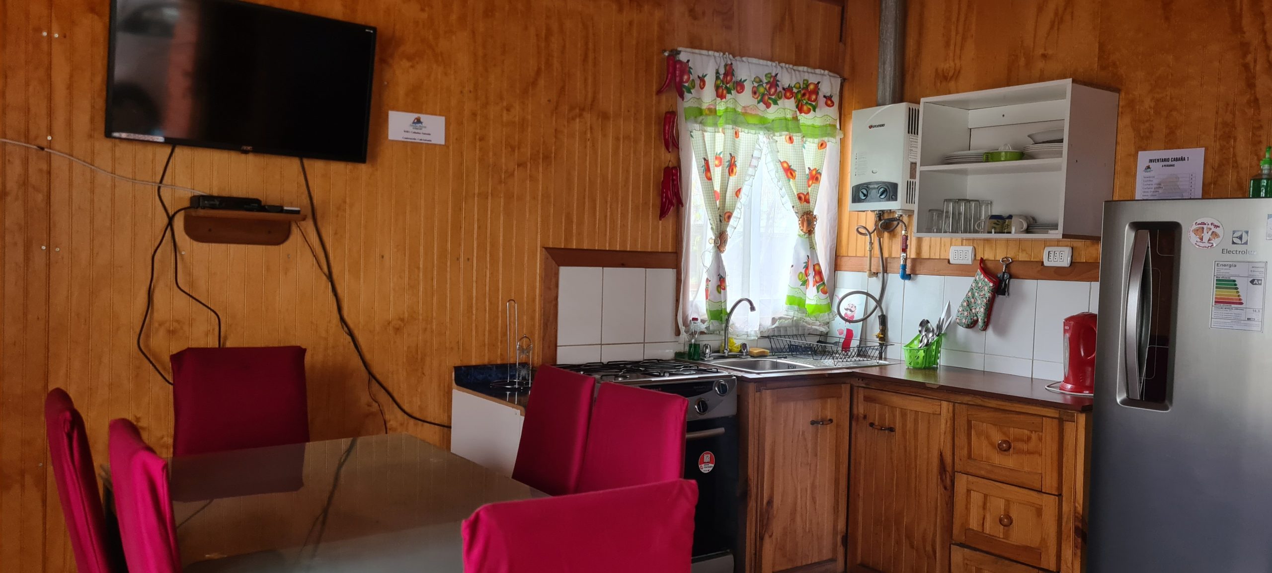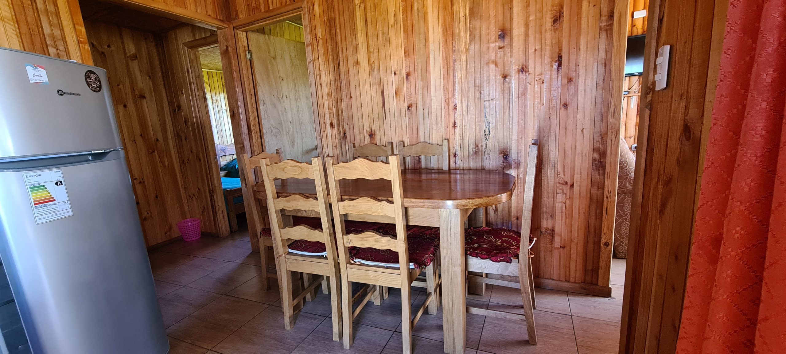 En nuestras dependencias contamos con 3 cabañas con diferntes capacidades de 2, 4 y 6 personas cada cabaña cuenta con lo siguiente – calefacción a Ieña, parrilla individual, cocina full equipada ( horno, refrigerador, tostador, hervidor, cubiertos, loza, etc.), TV Directv, Wifi, ropa de cama. Además, entregamos papel higiénico, jabón de manos fósforos y lavaloza.