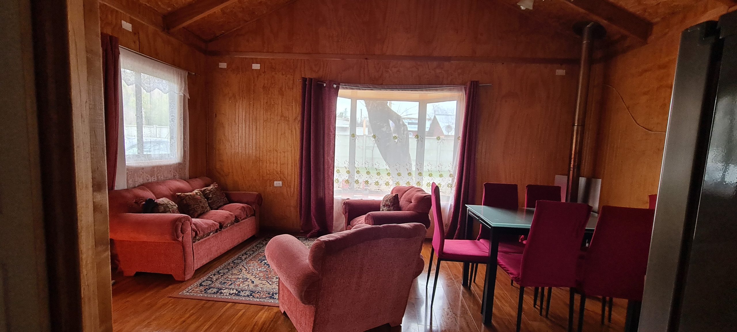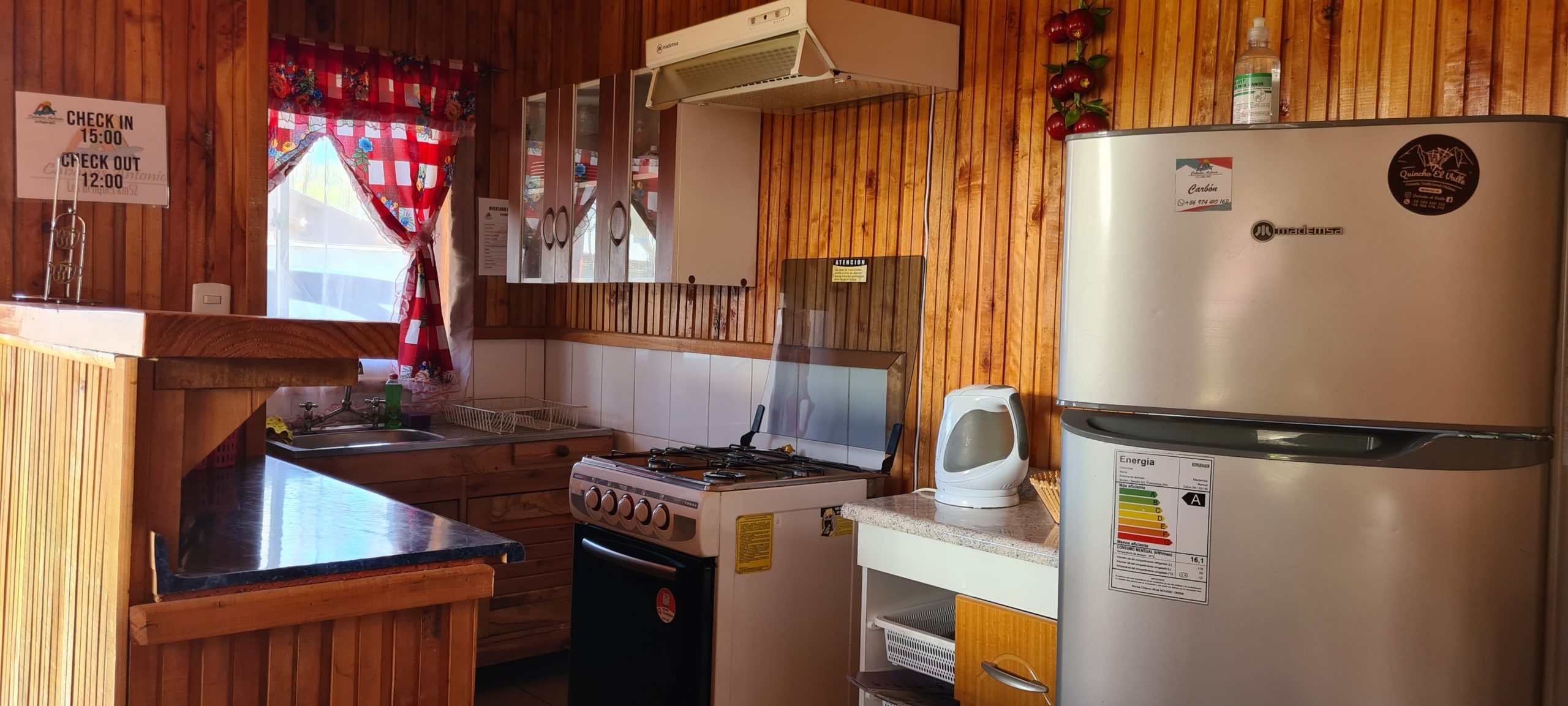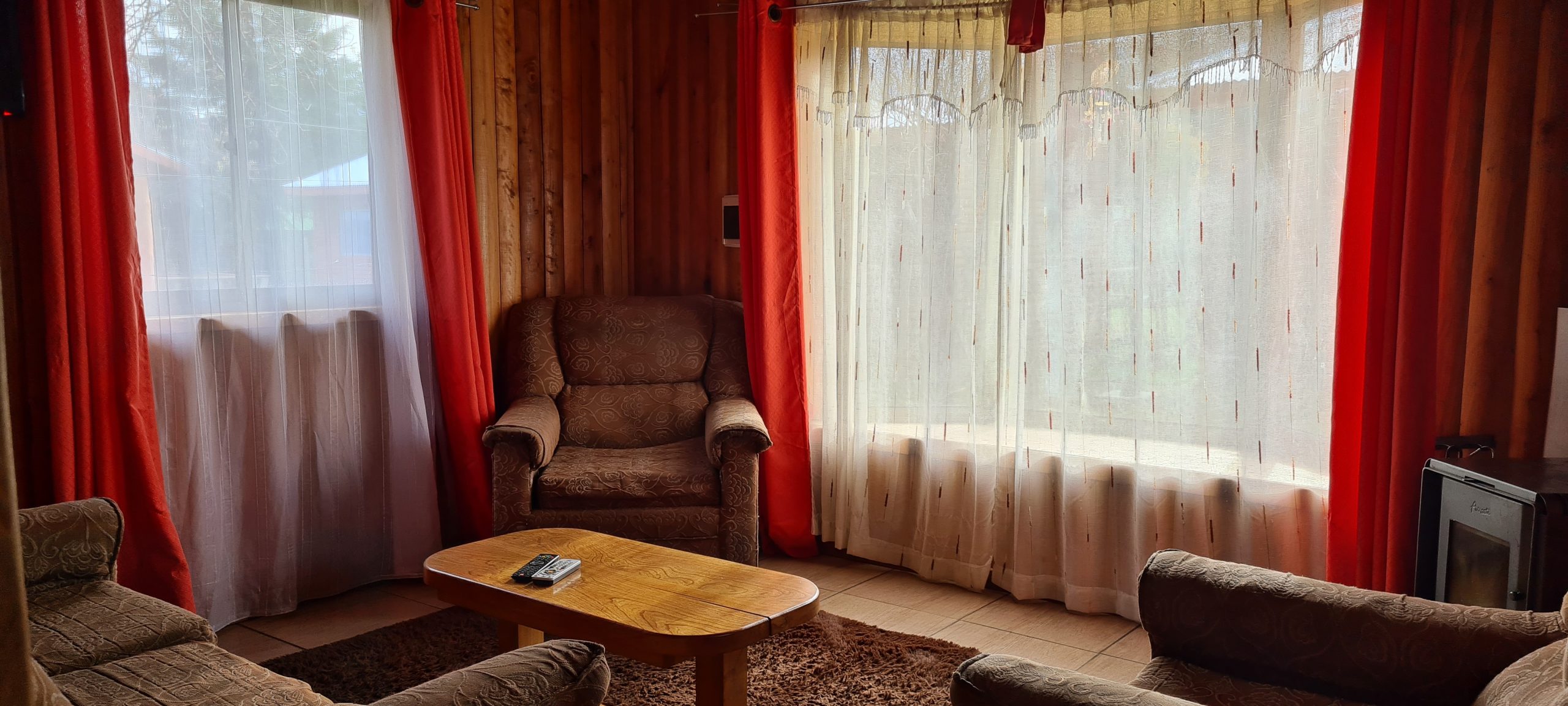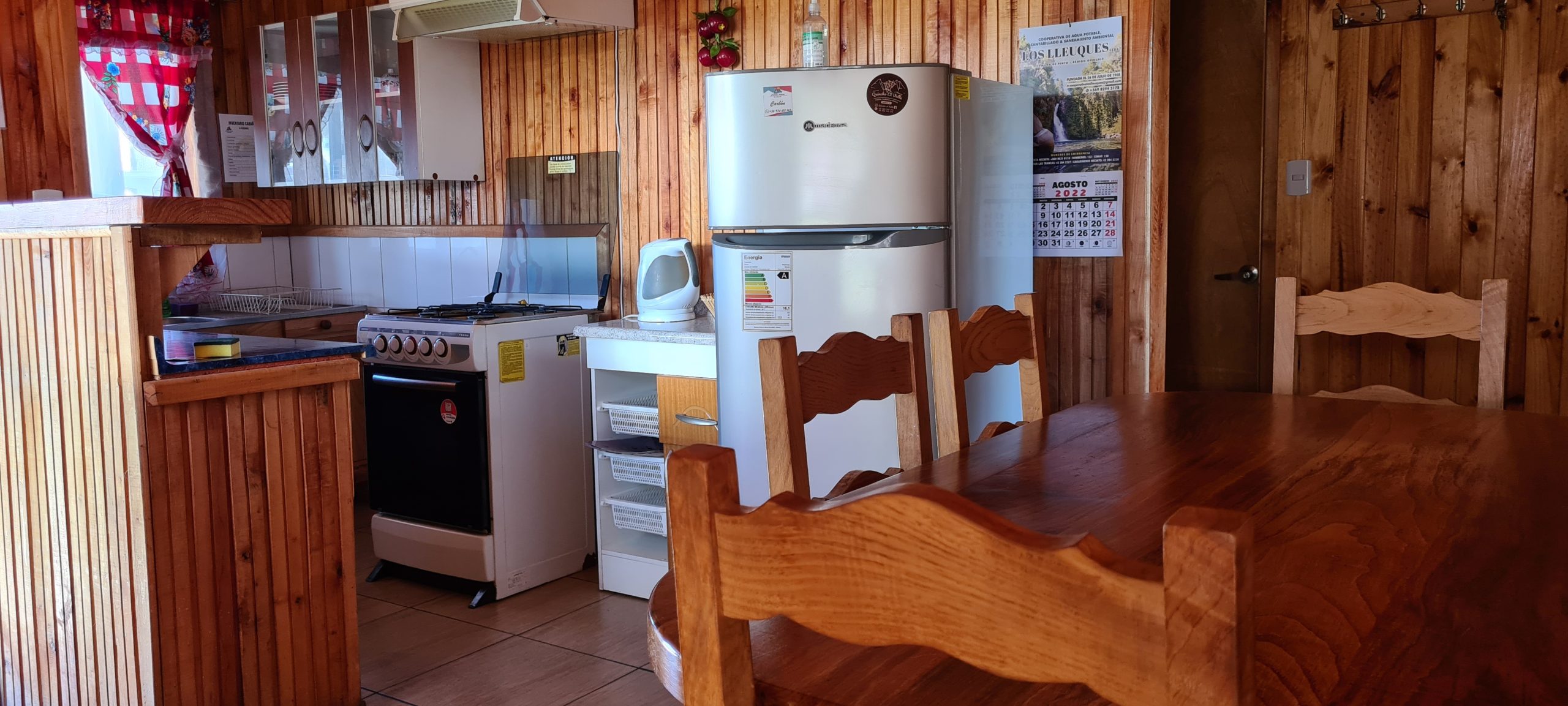 En nuestras dependencias contamos con 3 cabañas con diferntes capacidades de 2, 4 y 6 personas cada cabaña cuenta con lo siguiente – calefacción a Ieña, parrilla individual, cocina full equipada ( horno, refrigerador, tostador, hervidor, cubiertos, loza, etc.), TV Directv, Wifi, ropa de cama. Además, entregamos papel higiénico, jabón de manos fósforos y lavaloza.