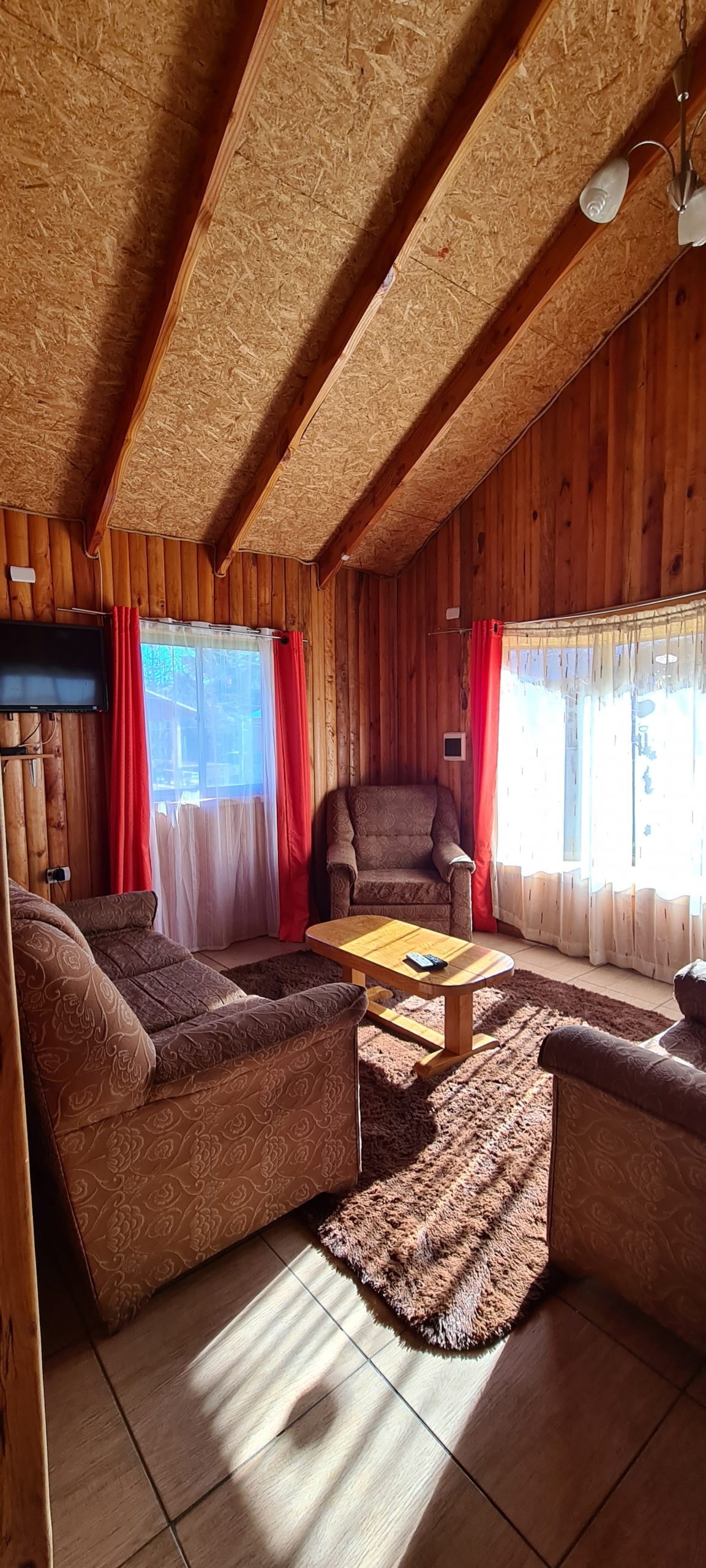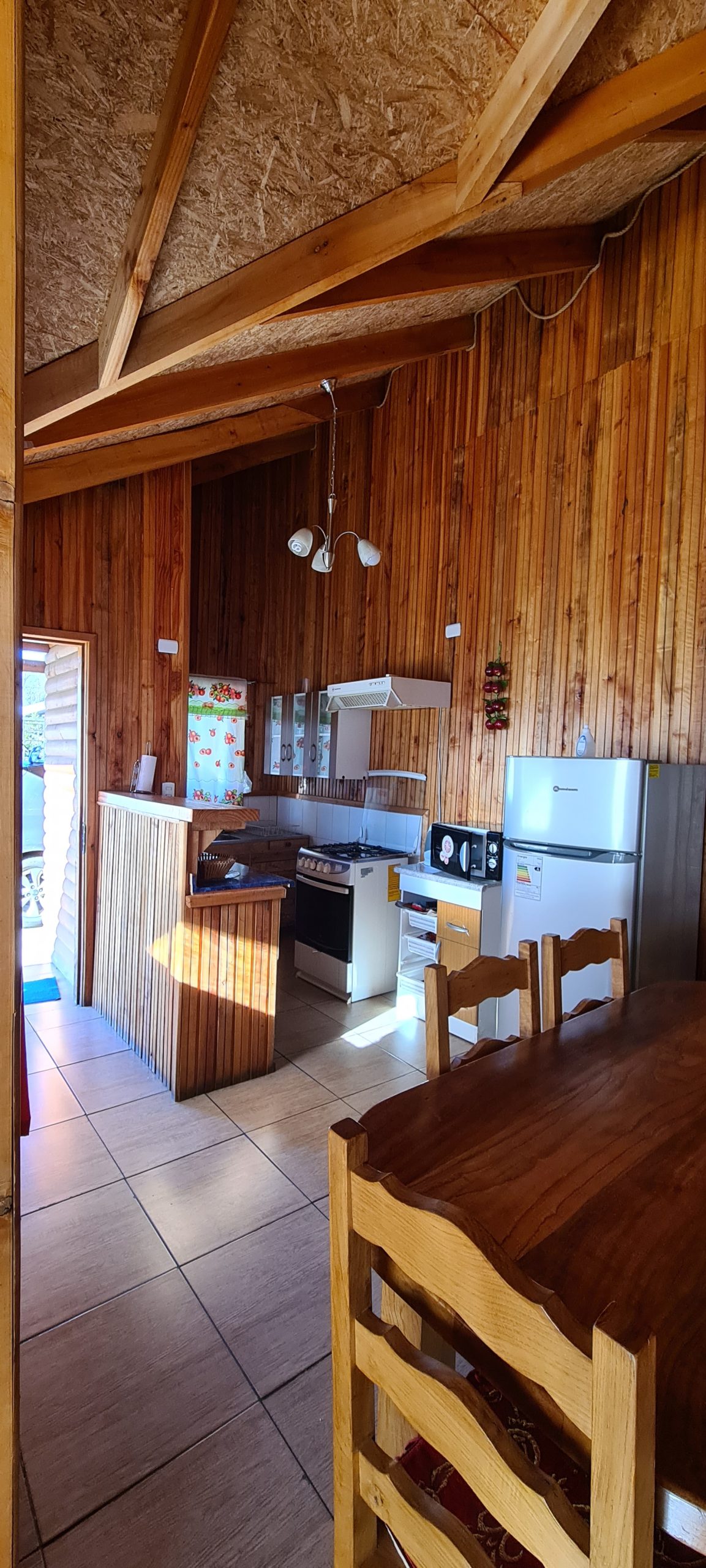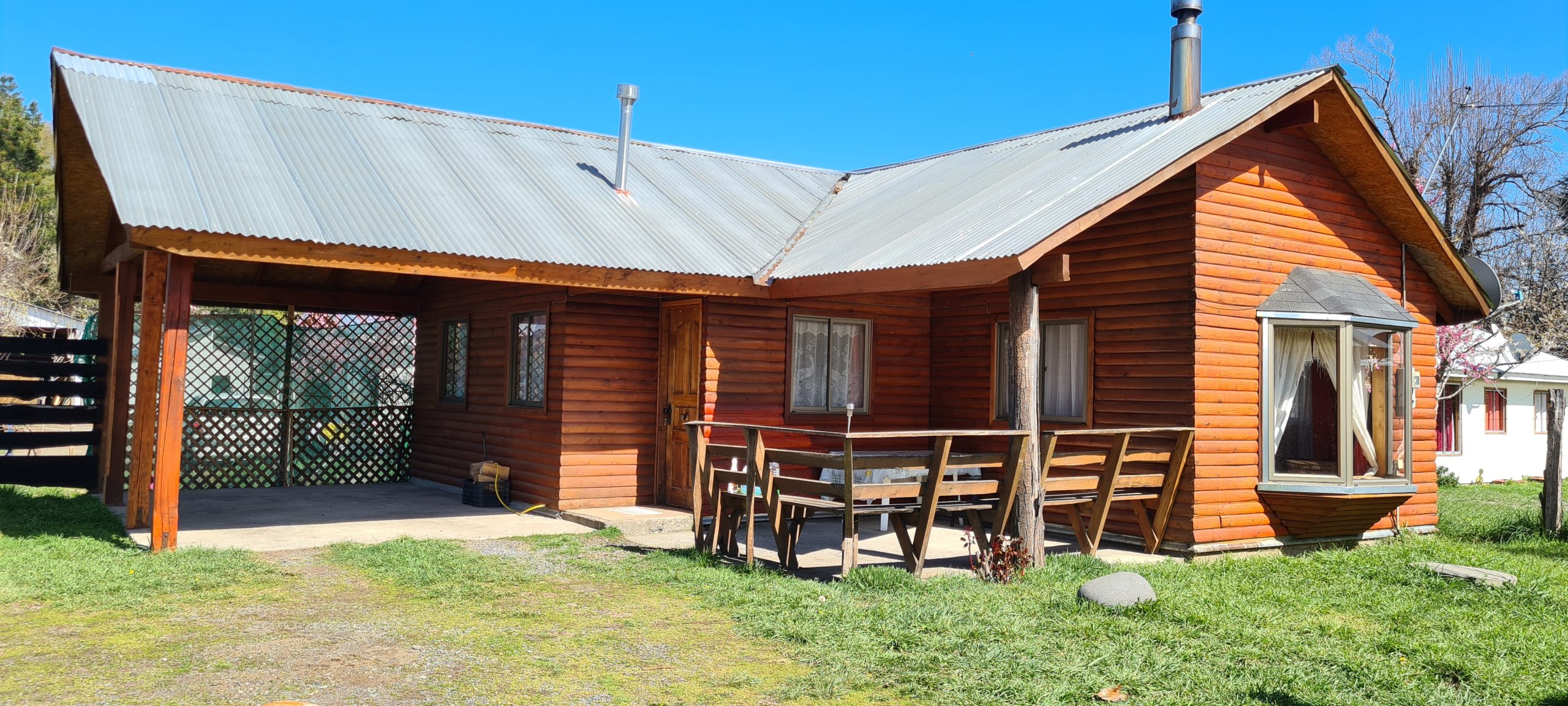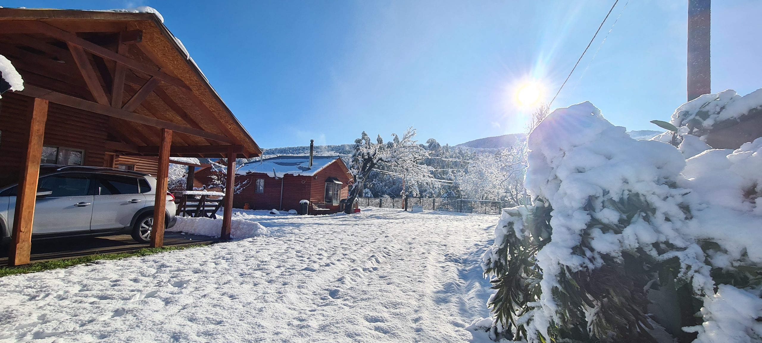 En nuestras dependencias contamos con 3 cabañas con diferntes capacidades de 2, 4 y 6 personas cada cabaña cuenta con lo siguiente – calefacción a Ieña, parrilla individual, cocina full equipada ( horno, refrigerador, tostador, hervidor, cubiertos, loza, etc.), TV Directv, Wifi, ropa de cama. Además, entregamos papel higiénico, jabón de manos fósforos y lavaloza.